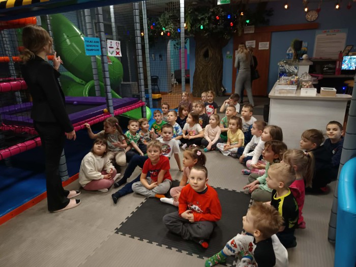26.02.26 r. dzieci z grup przedszkolnych pojechały na wycieczkę do sali zabaw SMYKOLANDIA w Kwidzynie. Przedszkolakom przedstawiono zasady bezpiecznej zabawy oraz właściwego  korzystania z urządzeń. Dzieci kształtowały umiejętność współdziałania w grupie oraz rozwijały i doskonaliły sprawność ruchową.